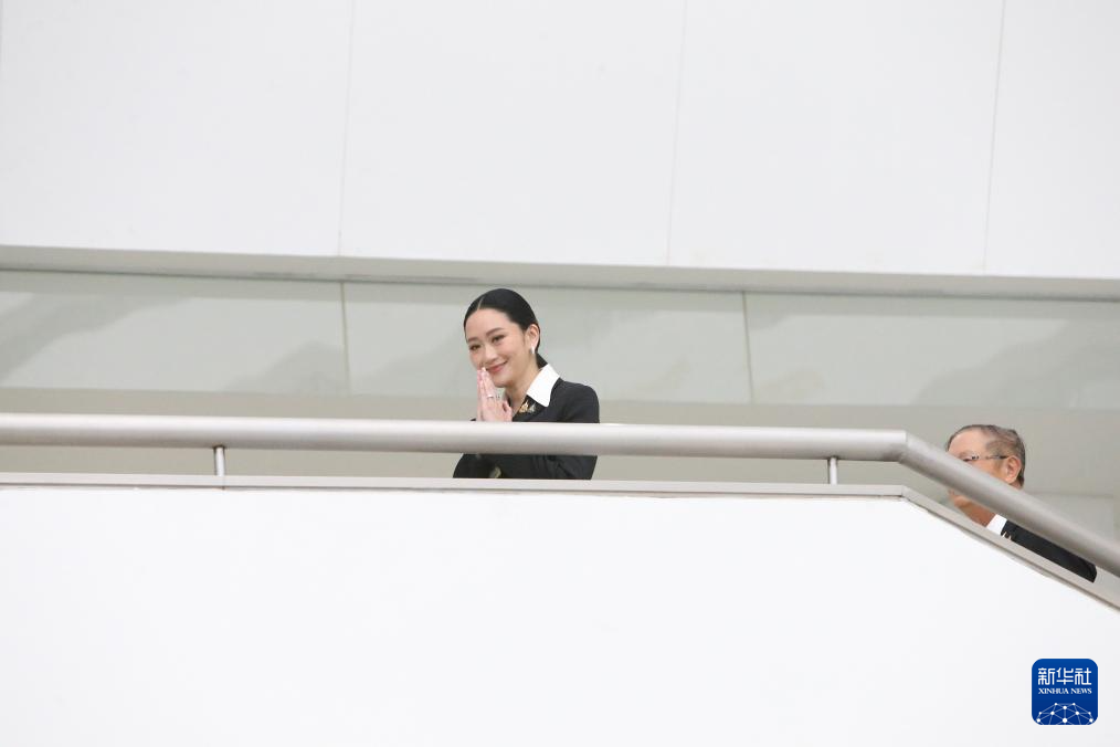 8月21日,时为泰国被停职总理的佩通坦(左)抵达位于曼谷的泰国宪法法院 图:新华社