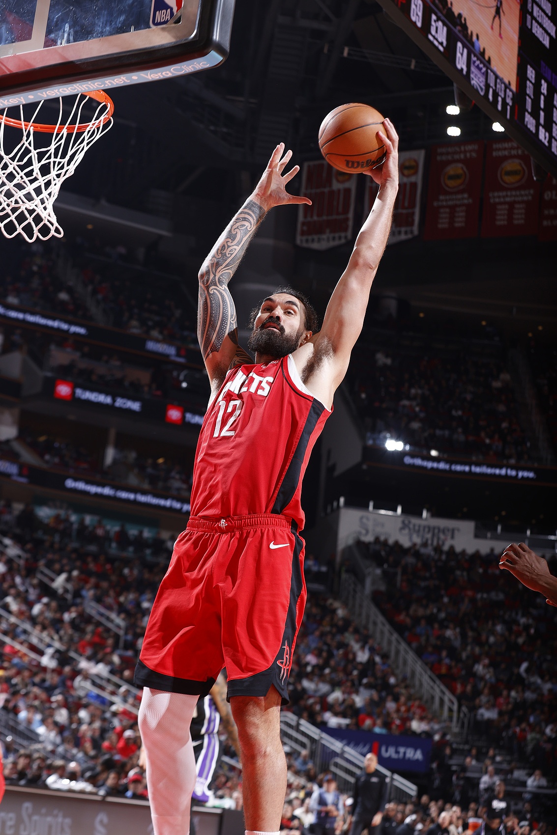 最突出的当属他的耐心——他不强行出手,也不盲目追求封盖数据,而是沉稳地阅读比赛,顺势而为。他全场+12的正负值反映出其在场时球队局势的稳健,单凭他在防守端的威慑力,就足以迫使火箭改变原有的进攻策略。